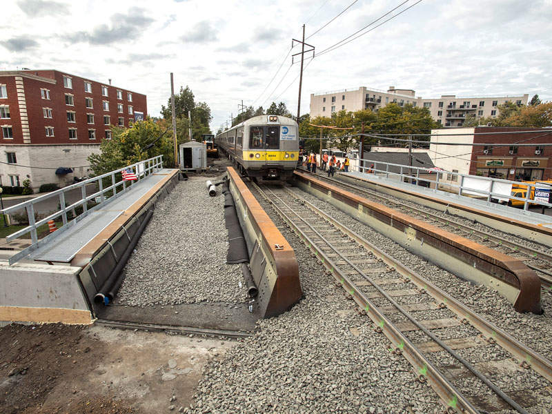 Avenue in Westbury, the first of seven street-level grade crossings to